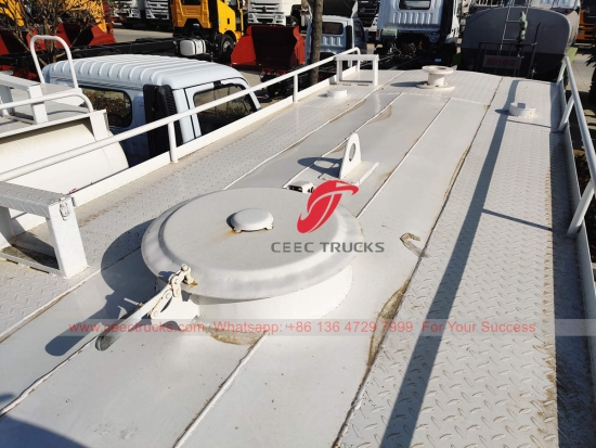 รถบรรทุกซีอีซีรถบรรทุกน้ำประกอบด้วยตัวถัง ถัง ปั๊ม วาล์ว ท่อน้ำ เครื่องพ่นน้ำ และชิ้นส่วนอื่นๆ เป็นหลัก รถบรรทุกน้ำทำจากแผ่นเหล็กกล้าคาร์บอนคุณภาพสูง