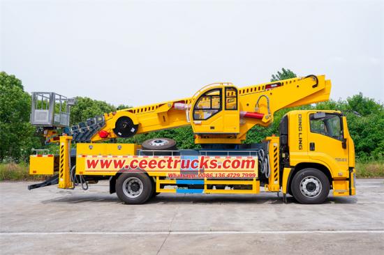รถกระเช้า ISUZU FTR 45 ม. เป็นรถบรรทุกพิเศษทางวิศวกรรมระดับมืออาชีพที่ผสานประสิทธิภาพทางเทคนิคที่ยอดเยี่ยมและการออกแบบเพื่อความปลอดภัย รถบรรทุกคันนี้ใช้แชสซีส์ ISUZU New GIGA FTR เป็นหลัก โดยติดตั้งเครื่องยนต์ 4HK1-TC60 ที่ให้กำลังขับเคลื่อนสูงสุด 205 แรงม้า และมวลรวมของรถ 18,000 กก. รถบรรทุกกระเช้า Isuzu FTR มีความสูงในการทำงานสูงสุด 45 เมตร ความสูงของแพลตฟอร์มอยู่ที่ 27 เมตรจากพื้นดิน รัศมีการทำงานสูงสุด 7 เมตร และระบบสมดุลแบบสถิตไฮดรอลิกเพื่อให้มั่นใจถึงความเสถียร