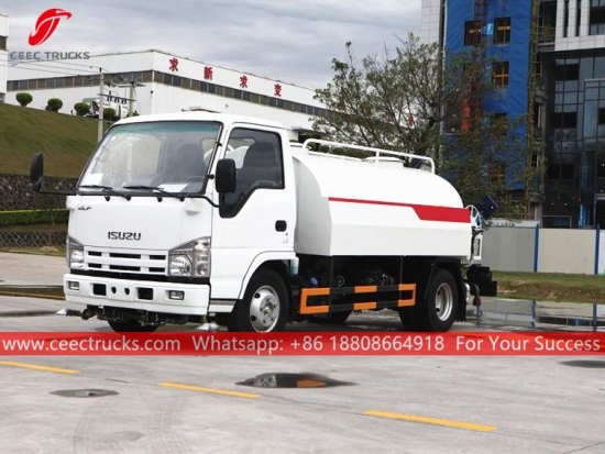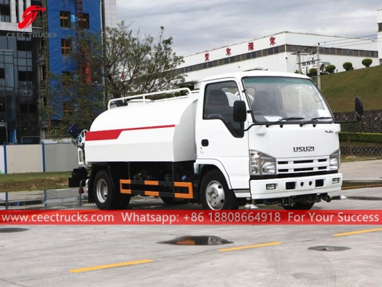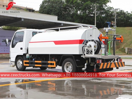 รถบรรทุกน้ำ ISUZU 4CBM พร้อมสายฉีดน้ำแรงดันสูง (เรียกอีกอย่างว่ารถบรรทุกน้ำเล็กอีซูซุ รถบรรทุกน้ำราคาถูก อีซูซุ รถบรรทุกน้ำอีซูซุ รถบรรทุกน้ำอีซูซุ รถส่งน้ำคุณภาพดี) เป็นใช้ในการล้างถนน ปลูกต้นไม้และสนามหญ้า ทำความสะอาดอาคารสูง ก่อสร้างถนนและโรงงาน มีหน้าที่ในการล้าง รดน้ำ ขนส่งน้ำ และดับเพลิง