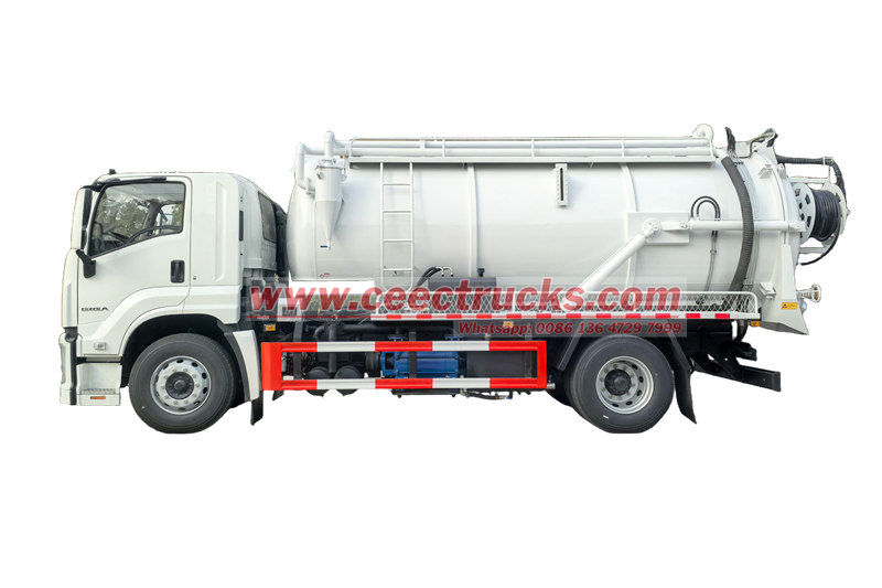 รถบรรทุกดูดและพ่นน้ำเสียแบบรวม Isuzu GIGA (เรียกอีกอย่างว่า รถบรรทุกดูดฝุ่น รถบรรทุกทำความสะอาดน้ำเสีย รถบรรทุกดูดน้ำเสีย รถบรรทุกดูดฝุ่นร่องน้ำขนาด 10,000 ลิตร ฯลฯ) ใช้ในการรวบรวม ขนส่ง และระบายของเหลว เช่น น้ำสกปรก ตะกอน บ่อเกรอะ น้ำมันดิบ และของแข็ง เช่น หินก้อนเล็ก อิฐ เป็นต้น
