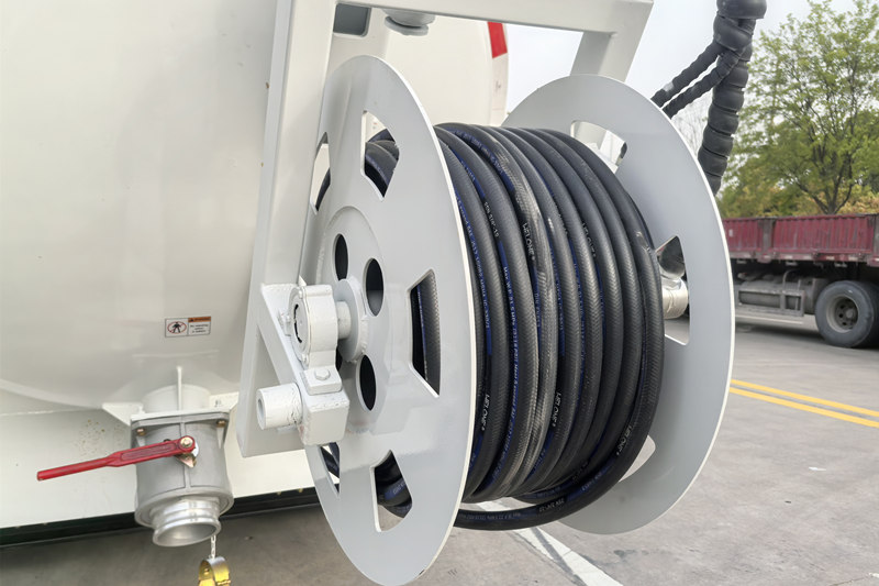 ตัวถังของรถทำจากเหล็กกล้าคาร์บอน Q355 คุณภาพสูง กระบอกสูบและหัวเชื่อมด้วยแผ่นเหล็กกล้าคาร์บอนหนา 6 มม. แบบเชื่อมตรงโครงสร้างแข็งแรง ตัวถังทำจากวัสดุป้องกันการกัดกร่อน พร้อมระบบแจ้งเตือนระดับของเหลวและอุปกรณ์ระบายของเหลวอย่างรวดเร็ว