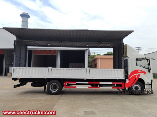 ความยาวรวมของรถบรรทุก Isuzu 4x2 ที่มีปีกเปิดได้คือ 7,600*2,470*2,700 มม. เมื่อปีกทั้งสองข้างเปิดออกเต็มที่ พื้นที่ภายในก็จะเปิดโล่งมาก และสามารถคัดแยกและโหลดและขนถ่ายสินค้าได้โดยตรงด้วยรถยก ช่วยประหยัดกำลังคนและเวลาได้มาก