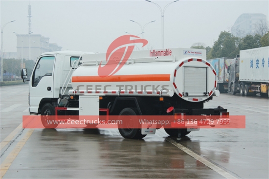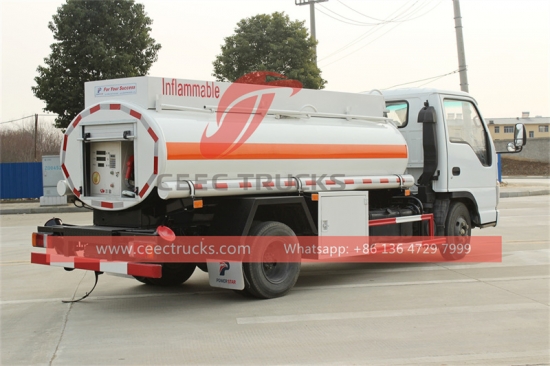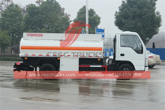 รถบรรทุกดีเซลเล็กอีซูซุ 5000L-อีกด้วยเรียกว่ารถบรรทุกน้ำมัน ISUZU, รถบรรทุกน้ำมัน ISUZU, หัวจ่ายน้ำมัน ISUZU, รถบรรทุกส่งน้ำมัน ISUZU, รถบรรทุกขนส่งน้ำมันดีเซลราคาโรงงาน, หัวจ่ายน้ำมัน ISUZU แบบมีหัวจ่ายคู่, ผู้ผลิตถังน้ำมัน/ดีเซล/น้ำมันเบนซิน)ออกแบบมาเพื่อขนส่งและส่งมอบเชื้อเพลิงหรือผลิตภัณฑ์ปิโตรเลียมอื่นๆ จากสถานที่หนึ่งไปยังอีกสถานที่หนึ่ง ถังของเราได้รับการออกแบบมาเป็นพิเศษเพื่อบรรจุและขนส่งของเหลวไวไฟจำนวนมากอย่างปลอดภัย เช่น น้ำมันเบนซิน น้ำมันดีเซล หรือเชื้อเพลิงเครื่องบิน ใช้ในอุตสาหกรรมโลจิสติกส์และการขนส่งเพื่อส่งมอบเชื้อเพลิงไปยังสถานีบริการน้ำมัน สนามบิน สถานที่ก่อสร้าง และสิ่งอำนวยความสะดวกอื่นๆ ที่ต้องการการจ่ายเชื้อเพลิงอย่างต่อเนื่อง
