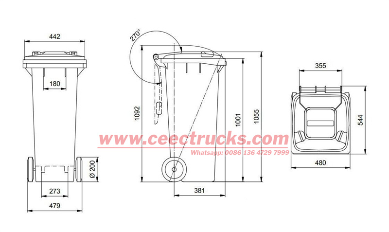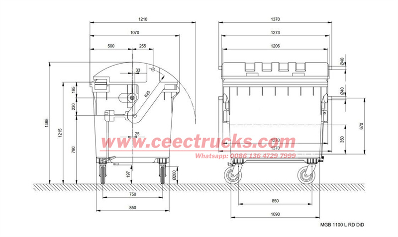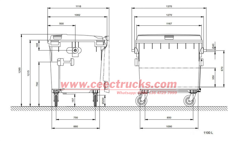| ด้านหน้า | ประมาณ 230L ด้านหน้ารถตู้ขยะ | |