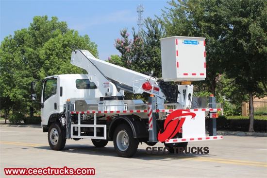 รถบรรทุกยกสูง Isuzu 700P NPR 4WD ทรงตะกร้า หรือเรียกอีกอย่างว่า เสาอากาศออฟโรด 4 ล้อ อีซูซุ NPR พีรถบรรทุกแบบมีรางฉันอีซูซุเอ็นพีอาร์ 4x4 เอทางอากาศ พีแพลตฟอร์ม ทีรัค- รถบรรทุกกระเช้า Isuzu 700P 4x4, รถบรรทุกกระเช้าออฟโรด Isuzu 700P 4x4, รถบรรทุกกระเช้า Isuzu NPR 30 ม.เป็นรถบรรทุกกระเช้าลอยฟ้าสมรรถนะสูงที่มี 30ความสูงในการทำงาน - เมตรและบูมแบบยืดหดได้ 5 ส่วน เหมาะสำหรับการปฏิบัติการทางอากาศต่างๆ โครงเครื่องที่แข็งแรงและระบบไฮดรอลิกขั้นสูงช่วยให้การทำงานมีเสถียรภาพและมีประสิทธิภาพ รถยกสูงแบบกระเช้า Isuzu 700P NPR 4WD มีความทนทานและใช้งานง่าย พร้อมทั้งมีระบบป้องกันความปลอดภัยหลายจุดเพื่อรับประกันความปลอดภัยของคนงาน ไม่ว่าจะเป็นสถานที่ก่อสร้าง เหมืองแร่ หรืองานอุตสาหกรรมอื่นๆ ก็สามารถแสดงให้เห็นถึงความสามารถในการปรับตัวและความน่าเชื่อถือที่ยอดเยี่ยม