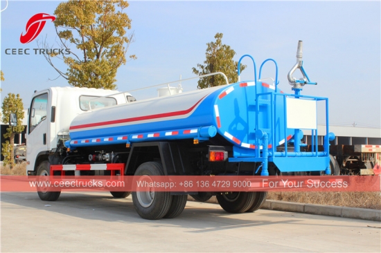 รถบรรทุกถังน้ำ ISUZU 7CBM (เรียกอีกอย่างว่า รถบรรทุกน้ำ, รถบรรทุกฉีดพ่นน้ำ, รถบรรทุกถังน้ำ, รถบรรทุกถังน้ำ, รถบรรทุกน้ำเคลื่อนที่-ใช้ในการล้างถนน ปลูกต้นไม้และสนามหญ้า ทำความสะอาดอาคารสูง ก่อสร้างถนนและโรงงาน มีหน้าที่ในการล้าง รดน้ำ ขนส่งน้ำ และดับเพลิง
