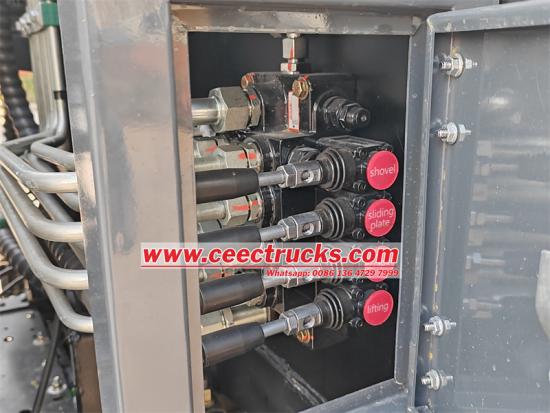 ระบบควบคุมไฟฟ้าในห้องโดยสาร:คนขับสามารถควบคุมการยกฝาท้ายรถ โหมดการโหลดและการขนถ่าย การทำความสะอาดฝาท้ายรถ และการดันและดึงพลั่วเข็นได้โดยตรงผ่านแผงควบคุมไฟฟ้าในห้องโดยสารที่สะดวกสบาย ซึ่งช่วยเพิ่มความสะดวกและปลอดภัยในการใช้งาน