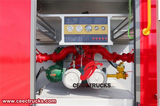 ปั๊มดับเพลิงซึ่งติดตั้งอยู่ที่ด้านหลังของรถถือเป็นหัวใจสำคัญของระบบดับเพลิง ปั๊มนี้ได้รับการออกแบบมาเพื่อสูบน้ำและส่วนผสมโฟมในปริมาณมากด้วยแรงดันสูง ช่วยให้นักดับเพลิงสามารถดับไฟได้อย่างรวดเร็ว ระบบท่อเชื่อมต่อปั๊มเข้ากับถัง หัวฉีด และอุปกรณ์เสริมอื่นๆ เพื่อส่งสารดับเพลิงอย่างมีประสิทธิภาพและควบคุมได้