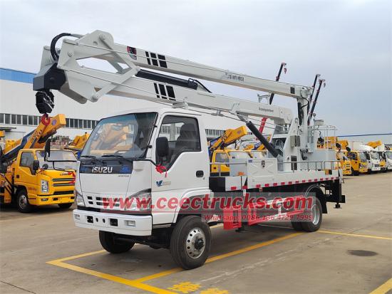 รถยกคน ISUZU เรียกอีกอย่างว่ารถกระเช้าแบบมีแท่นยก บูมลิฟท์แบบข้อต่อ รถกระเช้าแบบติดตั้งบนรถบรรทุก แท่นทำงานบนเครื่องบิน ลิฟต์คานไฮดรอลิก รถกระเช้าแบบมีแท่นยก รถกระเช้าแบบมีแท่นยก รถเครนติดตั้งบนรถบรรทุก ลิฟต์บนรถบรรทุก แท่นยกแบบยืดหดได้ แท่นทำงานบนเครื่องบิน แท่นทำงานบนรถบรรทุก ซึ่งมีความสูงในการทำงานบนเครื่องบิน 14 เมตร 16 เมตร 18 เมตร 20 เมตร 22 เมตร 24 เมตร 26 เมตร 28 เมตร 30 เมตร 32 เมตร และระบบการหมุนจะช่วยให้หมุนได้ 360 องศาอย่างต่อเนื่อง โดยมีระบบความปลอดภัยเพื่อป้องกันการตกกะทันหันในกรณีที่เกิดความล้มเหลว