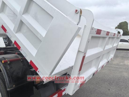 รถบรรทุกดัมพ์ขับเคลื่อน 4x4 ของ Isuzu ได้รับการดัดแปลงบนพื้นฐานของแชสซีขับเคลื่อนสี่ล้อ Isuzu ELF NPR โดยมีฐานล้อ 3,815 มม. ติดตั้งเครื่องยนต์ดีเซล Isuzu 190HP 4HK1-TCG61 กระปุกเกียร์ Isuzu MLD-6 สปีด และกล่องดัมพ์ที่ทำจากเหล็กกล้าคาร์บอนที่มีสามด้านและสี่ด้านล่าง 4,200×2,200×550 มม. การยกตรงกลาง การยกที่มั่นคง การขนถ่ายที่สะอาดและรวดเร็ว สามารถเปิดประตูหลังได้ และยานพาหนะได้รับการควบคุมโดยวาล์วควบคุมที่ด้านคนขับซึ่งใช้งานง่าย