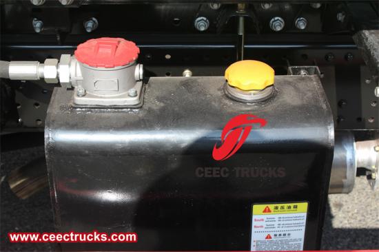 ปั๊มน้ำมันไฮดรอลิกและวาล์วควบคุม วาล์วปรับสมดุล ล็อคไฮดรอลิก กระบอกน้ำมันทำงานหลักของแขนตะขอ กระบอกน้ำมันเลื่อนของแขนเสื้อ ท่อน้ำมันไฮดรอลิก ถังน้ำมันไฮดรอลิก ขาตั้งเสริมไฮดรอลิกด้านหลัง วิธีการใช้งาน: การควบคุมด้วยมือและรีโมทคอนโทรลไร้สาย โอ้กล่องดัมพ์ |