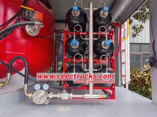 อีซูซุเอ็นเคอาร์ รถดับเพลิงไนโตรเจนประกอบด้วยถังเก็บไนโตรเจน ระบบควบคุมความดัน ระบบควบคุมการไหล ระบบหัวฉีด ระบบควบคุม และชิ้นส่วนอื่นๆ เป็นหลัก: