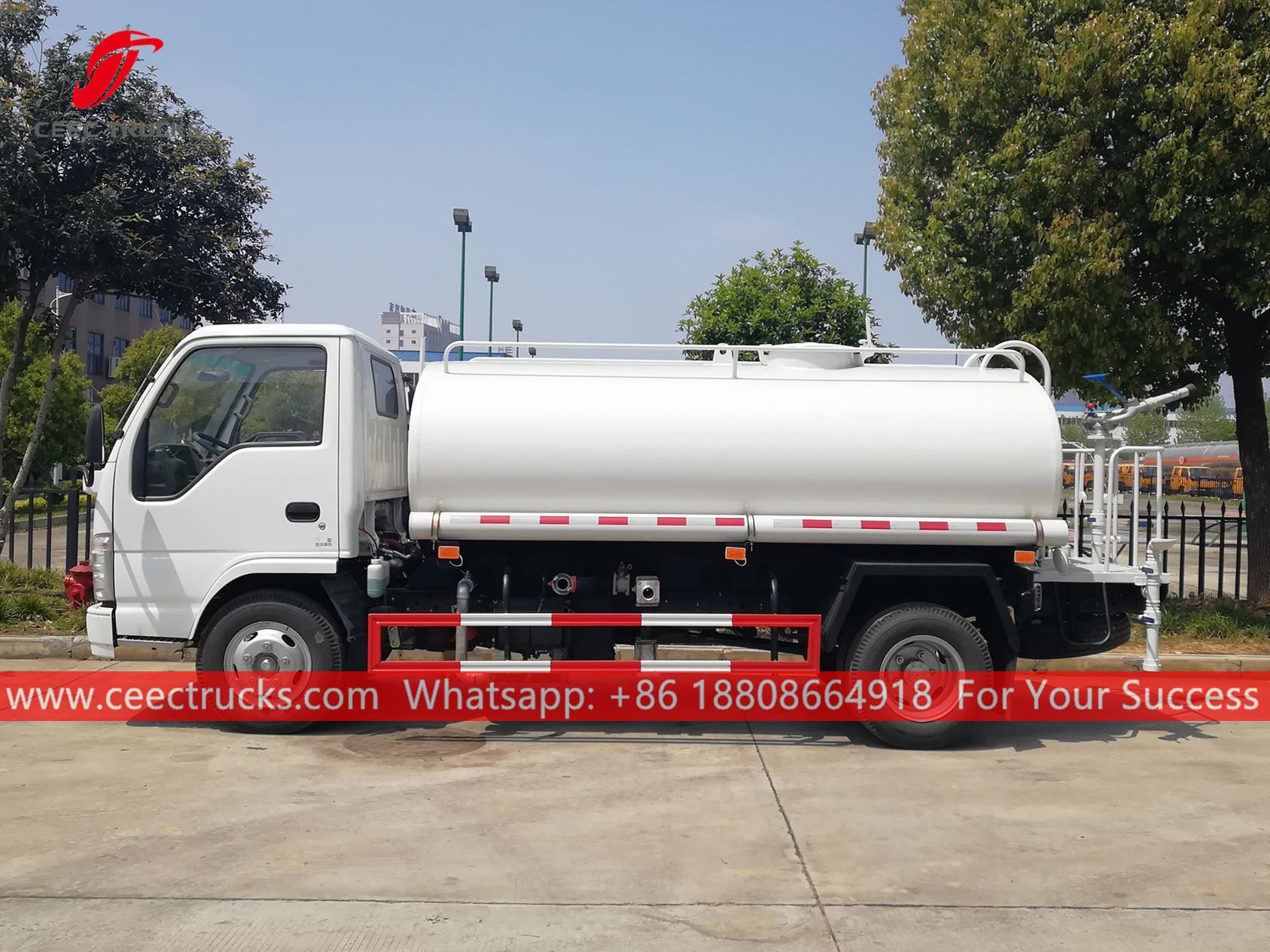 รถบรรทุกน้ำ ISUZU 5CBM (เรียกอีกอย่างว่ารถบรรทุกน้ำอีซูซุเอลฟ์, รถบรรทุกน้ำสเปรย์ ISUZU ขายดี, เครื่องฉีดน้ำอีซูซุราคาดี, รถบรรทุกน้ำอีซูซุ, รถบรรทุกส่งน้ำคุณภาพดี, รถบรรทุกน้ำขนาดเล็กอีซูซุ) เป็นใช้ในการล้างถนน ปลูกต้นไม้และสนามหญ้า ทำความสะอาดอาคารสูง ก่อสร้างถนนและโรงงาน มีหน้าที่ในการล้าง รดน้ำ ขนส่งน้ำ และดับเพลิง