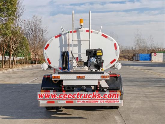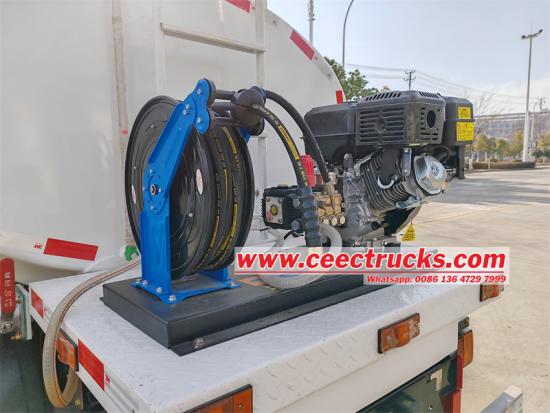 นอกจากนี้ รถบรรทุกยังติดตั้งเครื่องฉีดน้ำแรงดันสูงที่ติดตั้งไว้ด้านหลังด้วย การออกแบบที่สร้างสรรค์นี้ทำให้รถบรรทุกเครื่องฉีดน้ำสามารถทำความสะอาดด้วยแรงดันสูงได้ในขณะที่ฉีดน้ำ ซึ่งจะช่วยขจัดคราบฝังแน่นและฝุ่นที่เกาะอยู่บนพื้นถนนได้อย่างมีประสิทธิภาพ นอกจากนี้ การติดตั้งเครื่องฉีดน้ำด้านหน้ายังช่วยขยายพื้นที่ครอบคลุมของการฉีดพ่นน้ำ ทำให้รถบรรทุกสามารถฉีดพ่นน้ำได้อย่างครอบคลุมและไม่มีจุดบอด ช่วยทำให้สภาพแวดล้อมในเมืองสะอาดและสวยงามขึ้น