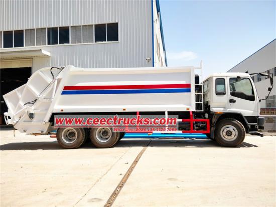 With CAN-BUS electric control systemอีซูซุ FVZ คอมเพลกซ์นักแสดงชาย รถบรรทุกขยะ หรือเรียกอีกอย่างว่า อีซูซุ ไฮดรอลิก คอมเพนักแสดงชาย รถบรรทุกขยะ อีซูซุ ท้ายตัดนักแสดงชาย รถบรรทุกขยะ เป็นยานพาหนะพิเศษที่ใช้สำหรับการเก็บและถ่ายโอนขยะมูลฝอยของเทศบาลโดยเฉพาะซีอีซี รถบรรทุกขยะเป็นการนำประสบการณ์หลายปีมาผสมผสานกับผลิตภัณฑ์ที่ผลิตขึ้น จุดประสงค์ในการออกแบบรถบรรทุกขยะแบบบรรทุกท้ายรถคือการรวบรวมขยะมูลฝอยของเทศบาลอย่างมีประสิทธิภาพและบดอัดขยะโดยใช้กลไกการบีบอัดบนรถ จึงหลีกเลี่ยงความไร้ประสิทธิภาพของการขนส่งขยะจำนวนเล็กน้อยในระยะทางไกล และสุดท้ายจึงขนส่งขยะไปยังสถานที่กำจัดขยะเพื่อกำจัดแบบรวมศูนย์