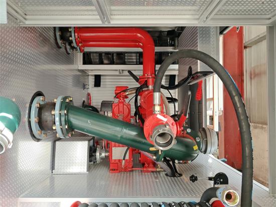 ระบบระบายความร้อนเครื่องยนต์ที่ได้รับการปรับปรุง: ใช้หม้อน้ำความจุขนาดใหญ่พิเศษ พัดลมประสิทธิภาพสูง (สามารถต่อพัดลมหลายตัวพร้อมกันได้หากจำเป็น) และการออกแบบท่อลมให้เหมาะสม เพื่อให้มั่นใจว่าเครื่องยนต์ กระปุกเกียร์ ระบบไฮดรอลิก และระบบส่งกำลังจะไม่ร้อนเกินไปเมื่อทำงานเต็มกำลังเป็นเวลานานที่อุณหภูมิแวดล้อม 55°C+ (เช่น ปั๊มน้ำเต็มกำลัง น้ำพุ่งขณะขับขี่) อาจจำเป็นต้องใช้ชุดระบายความร้อนเสริม