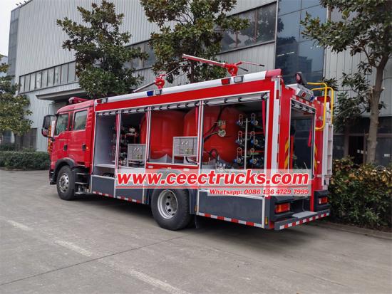 2000L dry powderนี่คือรถดับเพลิงชนิดผงแห้งที่สร้างขึ้นบนพื้นฐานของ ISUZU FTR Chassis โดยติดตั้งเครื่องยนต์ ISUZU 4HK1-TC60 อันทรงพลังซึ่งมีปริมาตรกระบอกสูบ 5.19 ลิตรและกำลังขับ 380 แรงม้า ใช้โหมดขับเคลื่อน 4X2 และติดตั้งกระปุกเกียร์ MLD 6 สปีด ความเร็วสูงสุดสามารถไปถึง 90 กม. / ชม. ซึ่งสามารถปรับให้เข้ากับสภาพถนนที่ซับซ้อนต่างๆ ได้ ในแง่ของระบบดับเพลิงนั้นรถบรรทุกติดตั้งถังเก็บผงแห้งเหล็กกล้าคาร์บอนขนาด 2,000 ลิตรสองถังและถังไนโตรเจน 12 ถังขนาด 80 ลิตรที่มีแรงดันการออกแบบ 15MPa