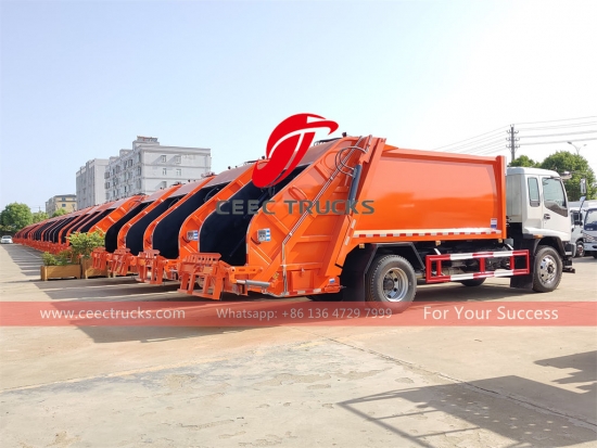 รถบรรทุกบดอัดขยะ ISUZU FVR 10cbm (เรียกอีกอย่างว่า รถบดอัดขยะ, รถบรรทุกอัดขยะ ISUZU, ขายตรงจากโรงงาน รถบรรทุกอัดขยะแบบโหลดท้าย ISUZU, รถบรรทุกขยะแบบโหลดท้าย ISUZU, รถบดอัดขยะผู้ผลิตในประเทศจีน) เป็น ออกแบบมาเพื่อการขนส่งขยะในชีวิตประจำวันในพื้นที่ที่อยู่อาศัย เช่น เมืองต่างๆ สถานีขนาดใหญ่ ท่าเรือและท่าเทียบเรือ สนามบิน และพื้นที่ที่มีประชากรหนาแน่น เช่น โรงงานอุตสาหกรรมและแร่ธาตุ และหน่วยทหาร