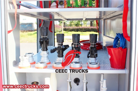 รถดับเพลิงกู้ภัยโฟมน้ำ Isuzu FVR 8cbm ยังมาพร้อมกับเครื่องมือและอุปกรณ์ดับเพลิงเฉพาะทางมากมาย ได้แก่ หัวฉีดน้ำและสายยางสำหรับฉีดน้ำและโฟมดับเพลิง รวมถึงบันได อุปกรณ์ตัด และอุปกรณ์อื่นๆ สำหรับปฏิบัติการกู้ภัย ห้องโดยสารของรถได้รับการออกแบบมาเพื่อให้ผู้ปฏิบัติงานมองเห็นไฟและบริเวณโดยรอบได้อย่างชัดเจน ช่วยให้สามารถตัดสินใจอย่างรอบรู้และตอบสนองต่อเหตุฉุกเฉินได้อย่างทันท่วงทีและมีประสิทธิภาพ