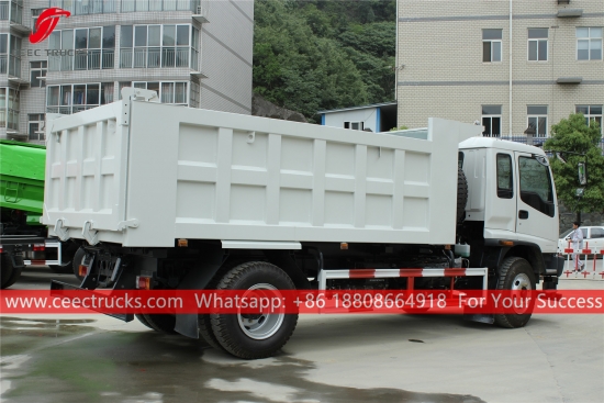 รถบรรทุกดัมพ์ ISUZU FVR แชสซีส์ ISUZU 4x2 LHD เกียร์ธรรมดา MLD 6 เกียร์ เครื่องยนต์ดีเซล ISUZU 240HP ตัวรถบรรทุกดัมพ์ทำจากเหล็กที่มีความแข็งแรงสูง พร้อมระบบ HYVA หรือลิฟเตอร์ไฮดรอลิกในประเทศให้เลือก งานพ่นสีและโลโก้ทั้งหมดขึ้นอยู่กับความต้องการของลูกค้า
