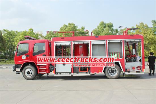 ไทยอี รถดับเพลิงถังน้ำและดินปืน Isuzu FVR มีประสิทธิภาพการทำงานแบบมัลติฟังก์ชัน โดยมีน้ำหนักตัวรวม 18,000 กก. ระบบขับเคลื่อน 4x2 และ 6HK1-TCจี61 เครื่องยนต์ดีเซลกำลัง 221 กิโลวัตต์ ความเร็วสูงสุด 90 กม./ชม. พร้อมถังน้ำความจุ 4 ลูกบาศก์เมตร2000กก. ถังดินปืนแห้ง รวมถึงปั๊มดับเพลิง CB10/40 ที่มีแรงดันใช้งาน 1~4 MPa และอัตราการไหล 40 ลิตรต่อวินาที นอกจากนี้ รถยังติดตั้งปืนฉีดน้ำ PS 40 และ PF อีกด้วย 30 ผงแห้ง ปืนใหญ่มีระยะการทำงานสูงสุดถึง 55 เมตร และ13เมตรตามลำดับ และมุมการทำงานตั้งแต่ -30° ถึง 80° ตอบสนองความต้องการดับเพลิงที่แตกต่างกัน ในเวลาเดียวกัน รถบรรทุกยังสามารถติดตั้งถังที่ทำจากวัสดุต่างๆ ซึ่งสามารถแบ่งออกเป็นหลายช่องตามความต้องการ และสามารถติดตั้งปั๊มจากแบรนด์ที่มีชื่อเสียงต่างๆ ซึ่งมีความยืดหยุ่นและใช้งานได้สูง