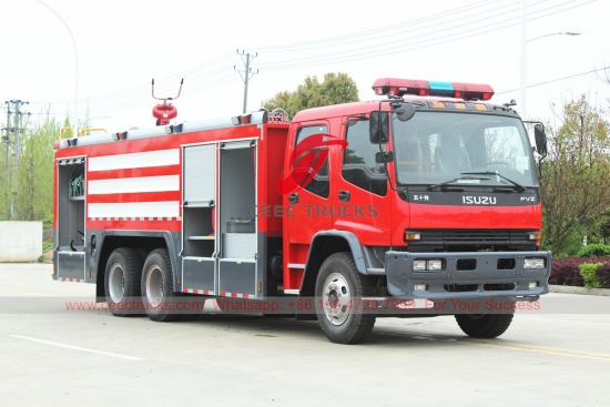 เครื่องยนต์ดับเพลิงโฟมน้ำ ISUZU FVZ รุ่นพวงมาลัยซ้าย ISUZU FVZ แชสซี 6x4 เกียร์ธรรมดา 9 สปีด FAST เครื่องยนต์ดีเซล ISUZU 300HP งานสีและโลโก้ขึ้นอยู่กับข้อกำหนด