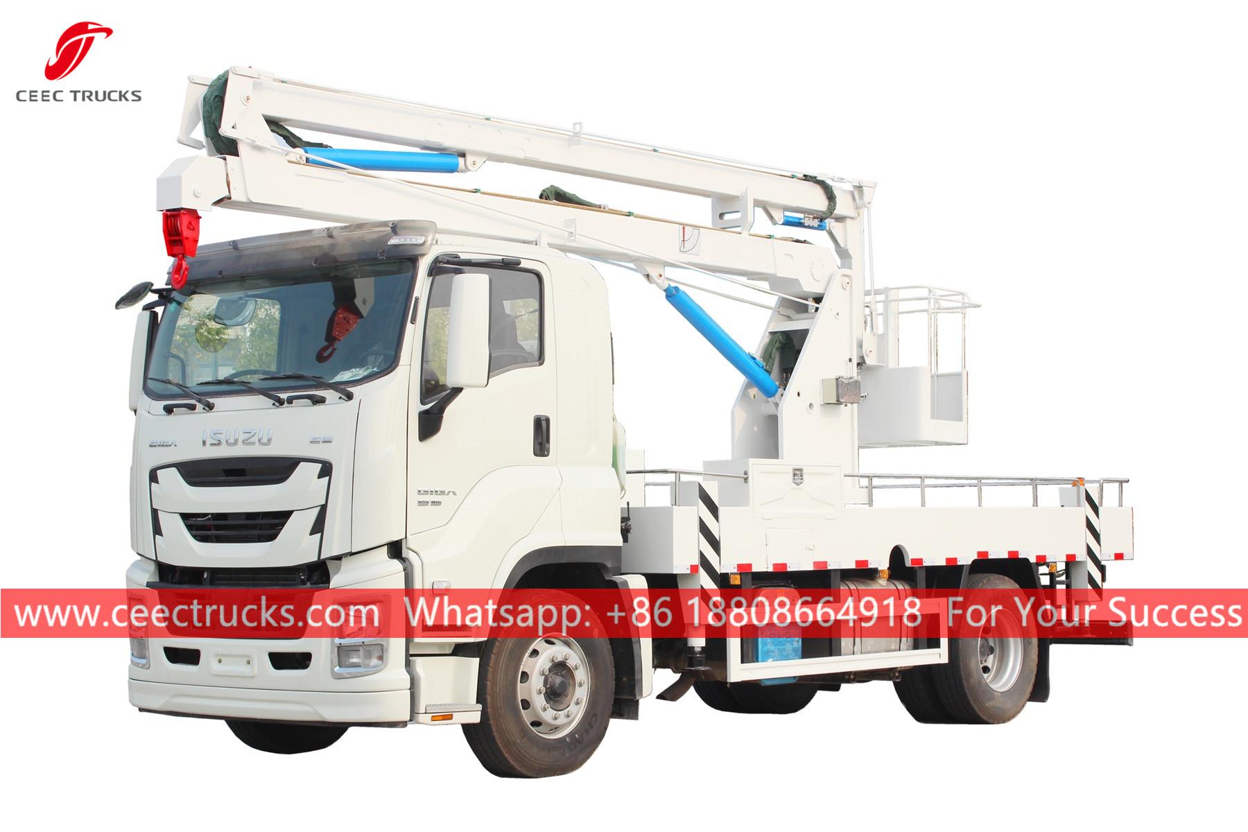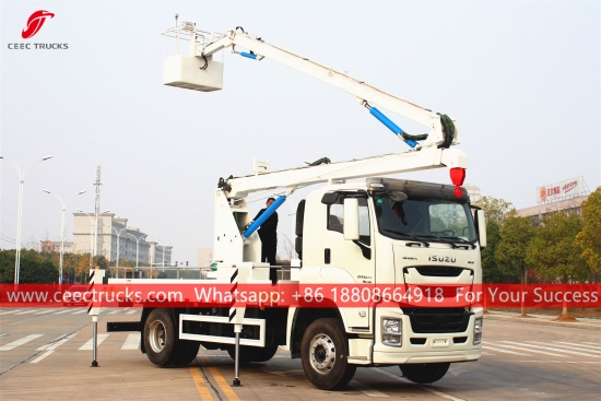 รถบรรทุกกระเช้าไฟฟ้า ISUZU GIGA 16 ม. -อีกด้วยเรียกว่า อีซูซุ กิกะรถบรรทุกทำงานบนที่สูง รถบรรทุกคนยกของ ISUZU รถบรรทุกกระเช้าลอยฟ้าติดตั้งบนรถบรรทุก ISUZU GIGA รถกระเช้ายกแขนคุณภาพดี รถกระเช้าบูมติดตั้งบนรถบรรทุก ISUZU GIGA รถบรรทุกปฏิบัติการบนแท่นสูง ISUZU GIGA-เหมาะสำหรับการบำรุงรักษาไฟจราจร ไฟถนน ต้นไม้จัดสวน ทำความสะอาด/ตั้งป้าย และงานทางอากาศที่สูงอื่นๆ-