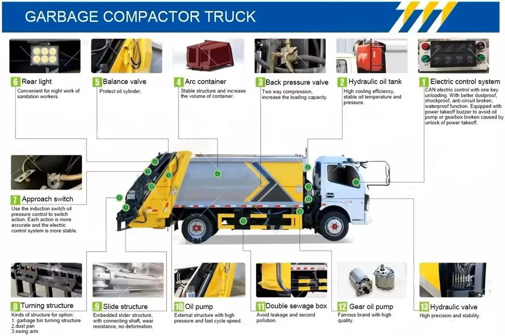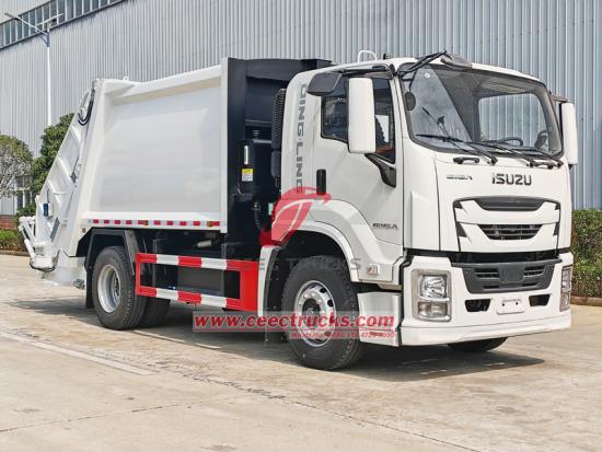 รถบรรทุกพ่วงท้าย ISUZU GIGA 4Xสร้างขึ้นโดยใช้ห้องโดยสารแบบ GIGA 4X พร้อมที่นอน ความจุตัวรถบดอัดสามารถจุได้ถึง 8 ตัน / 10CBM ซึ่งติดตั้งระบบควบคุมไฟฟ้า CAN BUS และระบบควบคุมจอยสติ๊กไฮดรอลิก ซึ่งส่วนใหญ่ใช้ในการเก็บและขนส่งขยะ และสามารถใช้เสาอากาศทำงานบนถนนในเมือง โรงงาน ชุมชน และพื้นที่อื่นๆ ที่ต้องการรถบรรทุกอีซูซุแบบท้ายวัสดุตัวถังของเครื่องบดอัดขยะแบบติดตั้งเป็นเหล็กกล้าคาร์บอนที่มีความแข็งแรงสูงตามมาตรฐานสากล T420 นอกจากนี้ยังสามารถปรับแต่งเป็นวัสดุ HARDOX ได้ทั้งภายในและภายนอกพร้อมการทาสีป้องกันสนิม ซึ่งมีประสิทธิภาพในการป้องกันสนิมรถบรรทุกบดอัดขยะ ISUZU GIGA 4X 10 ลูกบาศก์เมตรติดตั้งระบบควบคุมอัจฉริยะ CAN-BUS ที่ออกแบบใหม่ ระบบอัดขยะแบบมัลติฟังก์ชัน บันไดปีนด้านข้าง กล่องควบคุมไฟฟ้าในห้องโดยสารและด้านหลังของถังเก็บ ส่วนด้านหลังติดตั้งแป้นเหยียบ ซึ่งปรับแต่งมาเพื่อเก็บขยะจากพื้นที่ต่างๆ ถังเก็บน้ำเสียสองยูนิตสามารถป้องกันมลพิษที่สองได้อย่างมีประสิทธิภาพในระหว่างการขนส่ง ห้องโดยสารสำหรับที่นั่งแถวเดียวที่สบาย ให้สัมผัสการขับขี่ที่ดี ดังนั้น รถบรรทุกขยะนี้จึงเป็นรถบรรทุกขยะในอุดมคติ โดยเฉพาะสำหรับการขนส่งน้ำมันและเติมน้ำมันรถบรรทุกบดอัดขยะอีซูซุมีคุณสมบัติพิเศษที่แตกต่างจากรถเก็บขยะคันอื่นๆ คือมีระบบยกแบบไฮดรอลิกเต็มรูปแบบ ซึ่งทำให้ผู้ควบคุมสามารถยกและทิ้งถังขยะมาตรฐานสากลลงในรถได้โดยไม่ต้องสัมผัสตัวรถ ถังขยะสามารถปรับขนาดได้ตั้งแต่ 120 ลิตร 240 ลิตร 360 ลิตร 660 ลิตร 770 ลิตร และ 1,100 ลิตร คุณสมบัตินี้ไม่เพียงแต่รับประกันความปลอดภัยของผู้ควบคุมรถเท่านั้น แต่ยังช่วยเพิ่มประสิทธิภาพและลดความเสี่ยงในการทิ้งขยะอีกด้วย