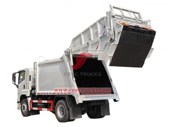 รถบรรทุกขยะแบบท้ายบรรทุกอีซูซุ 10 คิวบีเอ็ม พร้อมอุปกรณ์บดอัดผลิตโดย CEEC TRUCKS ติดตั้งแชสซีรถบรรทุก Isuzu 4x2 GIGA 4X รุ่น FTR Euro 6 เครื่องยนต์ดีเซล Isuzu 205HP รุ่น 4HK1-TCG60 มาตรฐานไอเสีย Euro 6 พร้อมปริมาตรกระบอกสูบ 5193cc เหมาะสำหรับลูกค้าทุกคนทั่วโลก ระยะฐานล้อ 4500 มม. ที่นั่ง 2+1 ที่นั่งพร้อมเครื่องปรับอากาศภายในห้องโดยสาร ระบบเบรกอากาศพร้อม ABS เครื่องยนต์ดีเซล 4 จังหวะ 4 สูบเรียง ระบบช่วยควบคุมทิศทาง รถบรรทุกตักท้ายมีโหมดการทำงาน 3 โหมด รวมถึงระบบควบคุมไฟฟ้า CAN-BUS ในห้องโดยสาร จอยสติ๊กไฮดรอลิกด้านหลังห้องโดยสาร กล่องควบคุมไฟฟ้า CAN-BUS ในช่องใส่ของท้ายรถ นอกจากนี้ ยังสามารถปรับแต่งอุปกรณ์เอียงด้านหลังเพื่อบรรทุกถังขนาด 240 ลิตร 360 ลิตร 660 ลิตร 770 ลิตร และ 1100 ลิตร มีทั้งถังพลาสติกและถังโลหะ