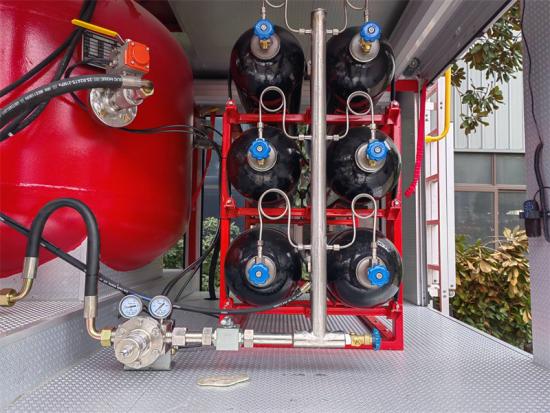 Customized dry chemical system with Nitrogen tankerนี่คือรถดับเพลิงที่ใช้ไนโตรเจนผงแห้งซึ่งสร้างขึ้นบนแชสซี ISUZU โดยติดตั้งเครื่องยนต์ ISUZU 6UZ1-TCG61 ที่ทรงพลังซึ่งมีปริมาตรกระบอกสูบ 9.839 ลิตรและกำลังขับ 380 แรงม้า เอชพี . มันใช้การ 4 เอ็กซ์ 2 โหมดขับขี่และติดตั้งเกียร์ 12 สปีด ความเร็วสูงสุดสามารถไปถึง 90 กม./ชม. ซึ่งสามารถปรับให้เข้ากับสภาพถนนที่ซับซ้อนต่างๆ ได้ ในแง่ของระบบป้องกันอัคคีภัย รถยนต์ติดตั้งระบบ 700กก. ถังเก็บผงแห้งเหล็กกล้าคาร์บอนและ 6หน่วย ถังไนโตรเจนขนาด 80 ลิตร แรงดันออกแบบ 15MPa ปั๊มดับเพลิงขับเคลื่อนด้วย PTO มีช่วงแรงดัน 1.6-2.5 MPa และอัตราการไหล 80-120 กก./วินาที ปืนดับเพลิงมีความเร็วในการพ่น 60-100 กก./วินาที และระยะ 40-60 เมตร ซึ่งสามารถตอบสนองสถานการณ์ไฟไหม้ต่างๆ ได้อย่างมีประสิทธิภาพ นอกจากนี้ รถยังติดตั้งอุปกรณ์ดับเพลิงมาตรฐานครบชุด เช่น พลั่ว งัด ขวาน และอุปกรณ์ตัด ส่วนบันไดและไฟสปอตไลท์เป็นอุปกรณ์เสริม