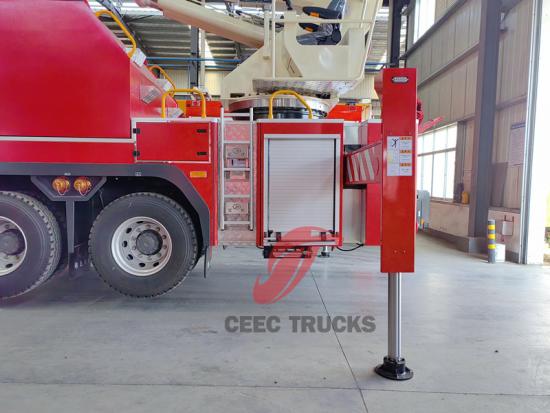 ท่อของระบบป้องกันอัคคีภัยเป็นท่อสแตนเลส + ท่อโลหะผสมอลูมิเนียม ท่อส่งน้ำจะไปถึงตัวรถด้านบนผ่านตัวหมุนตรงกลาง ซึ่งสามารถตอบสนองความต้องการน้ำประปาหรือโฟมได้ มีปืนฉีดน้ำควบคุมระยะไกลแบบไฟฟ้าที่หัวแขนด้านบน ซึ่งสามารถเปลี่ยนรูปแบบการไหลของน้ำ (ตรงและน้ำกระเซ็น) และสามารถฉีดน้ำหรือโฟมได้ มีช่องทางเข้าน้ำที่ด้านล่างของรถเพื่อตอบสนองความต้องการดับเพลิงที่มีการไหลสูงของอาคารสูง