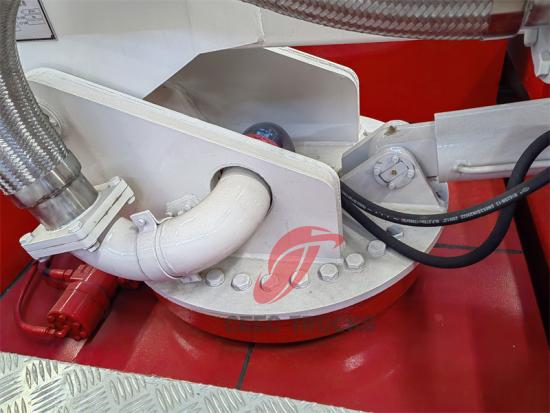ใช้ตัวหมุนตรงกลางเพื่อเชื่อมต่อแรงดันไฮดรอลิก วงจรไฟฟ้า และวงจรน้ำในการขึ้นและลงรถ เพื่อหลีกเลี่ยงความเสียหายของท่อไฮดรอลิก วงจรไฟฟ้า และวงจรน้ำที่เกิดจากการหมุนของโต๊ะหมุนและแขน