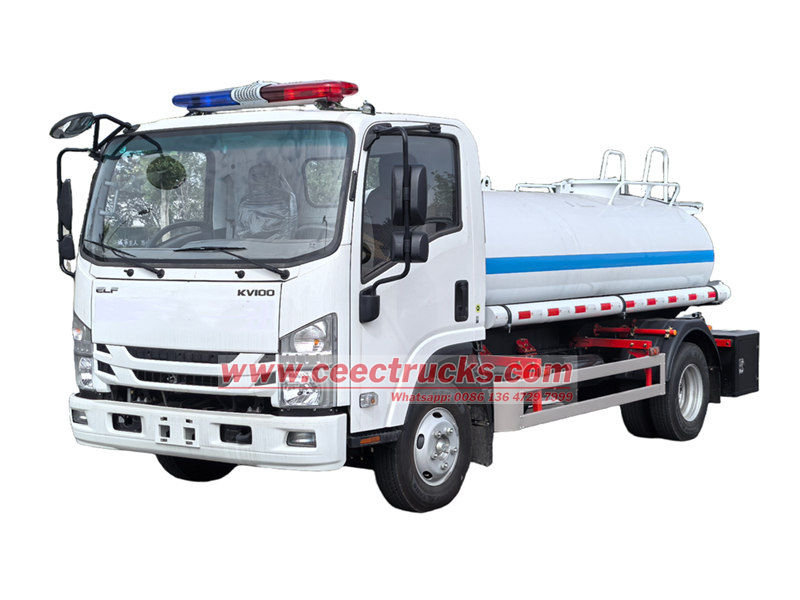 รถบรรทุกน้ำลากจูง Isuzu KV100 พร้อมหัวฉีดน้ำ (หรือเรียกอีกอย่างว่า รถบรรทุกน้ำดื่ม Isuzu, รถบรรทุกน้ำ Isuzu, รถบรรทุกน้ำดื่ม Isuzu, รถบรรทุกน้ำ Isuzu) ใช้สำหรับขนส่งและจ่ายน้ำ ไม่ว่าจะเป็นน้ำอุตสาหกรรมหรือน้ำเพื่อการเกษตร ถังหรือถังทำจากสแตนเลสที่ผ่านการบำบัดปลอดสารพิษ