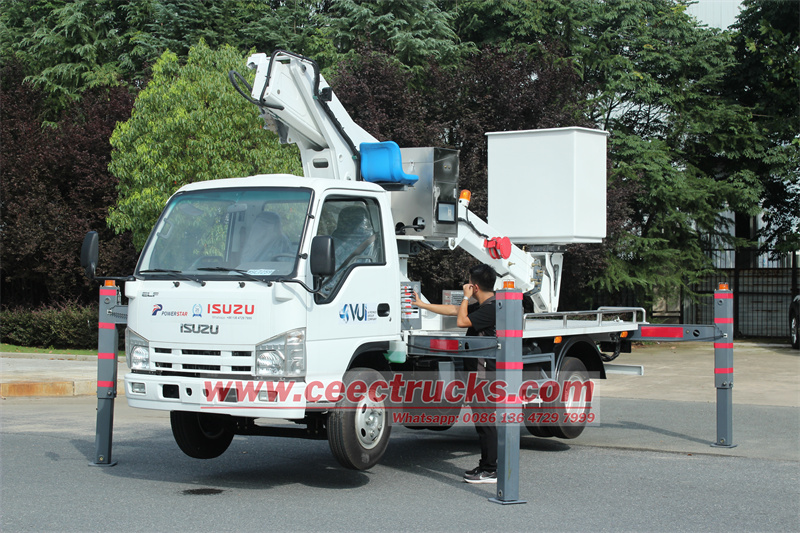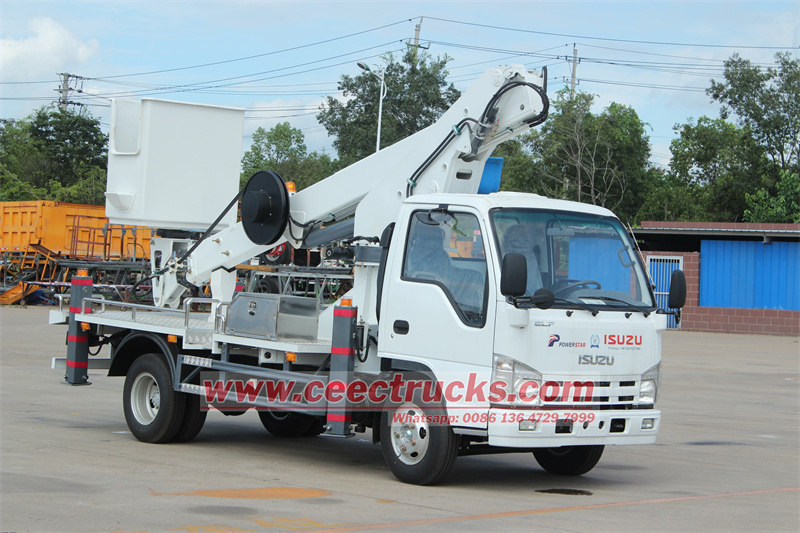 ออกแบบใหม่รถบรรทุกยกแบบยืดหด ISUZU 12 เมตร จากญี่ปุ่นเหมาะสำหรับการบำรุงรักษาไฟจราจร ไฟถนน ต้นไม้จัดสวน ทำความสะอาด/ตั้งป้าย และงานทางอากาศอื่นๆ ที่ใช้แชสซีส์รถบรรทุกขนาดเล็ก ISUZU ELF เครื่องยนต์ดีเซล 4KH1CN6LB 88KW / 120HP เกียร์ธรรมดา MSB 5 เกียร์เดินหน้า 5 เกียร์ถอยหลัง 1 เกียร์ ยางแบบไม่มียางใน 7.00R16 จำนวน 7 ชุด รวมถึงยางอะไหล่ 1 ชุด รถบรรทุกติดตั้งด้วยบูมตรงยาว 12 ม. และถังเก็บความร้อนวัสดุไฟเบอร์กลาสพร้อมความสามารถไฟ 220V พร้อมกล่องควบคุมระยะไกล ทั้งหมดนี้ทำให้รถบรรทุกสามารถบรรทุกของได้รถยกสูงแบบไฮดรอลิกยืดหด ISUZU 12 เมตรได้รับความนิยมอย่างมากและส่งออกอย่างกว้างขวางในประเทศแถบแปซิฟิก ปาเลา สหพันธรัฐไมโครนีเซีย หมู่เกาะมาร์แชลล์ ประเทศนาอูรู คิริบาส ปาปัวนิวกินี หมู่เกาะโซโลมอน วานูอาตู ฟิจิ ตูวาลู ซามัว และตองกา