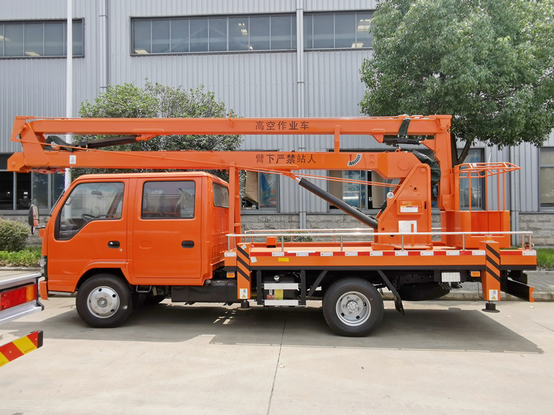 รถบรรทุกกระเช้าไฟฟ้า ISUZU 16 ม. ห้องโดยสารคู่ 120 แรงม้าเป็นรถกระเช้าแบบแขนพับ เมื่อเทียบกับรถกระเช้าแบบแขนตรงหรือแบบกรรไกร จะมีความยืดหยุ่นสูงกว่าและเหมาะกับการใช้งานในพื้นที่แคบความสูงในการทำงานสูงสุดคือ 16 เมตร และความสูงช่วงประมาณ 7.5 เมตร ซึ่งสามารถติดตั้งฝาครอบตะกร้าแบบมีฉนวนได้ตามความต้องการในการก่อสร้างในเมือง การบำรุงรักษาสะพาน การติดตั้งไฟฟ้า ฯลฯ รถบรรทุกยกคนแบบตะกร้า Isuzuมาพร้อมกับระบบล็อคไฮดรอลิก จำกัด และระบบเบรกฉุกเฉิน โดยรุ่นบางรุ่นใช้ชิ้นส่วนไฮดรอลิกที่นำเข้า (เช่น วาล์วควบคุมตามสัดส่วนที่ไวต่อน้ำหนัก) และระบบควบคุมอัจฉริยะเพื่อให้การทำงานราบรื่นและปลอดภัย