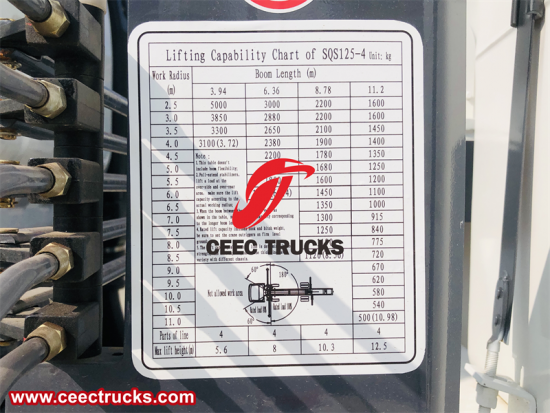 ตารางแสดงความสามารถในการยกของ XCMG SQS125-4