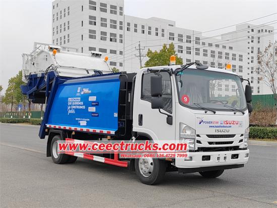 รถบรรทุกขยะอัด 8 คิว อีซูซุ 700P ดัดแปลงจากแชสซี อีซูซุ 700P ฐานล้อ 3815 มม. เครื่องยนต์ อีซูซุ 4HK1-TCG61 139 กิโลวัตต์ ปล่อยไอเสียยูโร 6 ความจุกระบอกสูบ 5193 มล. ปริมาตรการอัดของรถ 8 คิว ผลิตจากเหล็กกล้าคาร์บอน ระบบโหลดและขนขยะของรถมีระบบควบคุม 4 ระบบ ได้แก่ กล่องควบคุมไฟฟ้าในห้องโดยสาร คันควบคุมไฮดรอลิกแบบแมนนวลที่ด้านคนขับ กล่องควบคุมไฟฟ้าที่ด้านซ้ายของประตูท้าย และคันควบคุมแบบแมนนวลที่ด้านขวาของประตูท้าย ซึ่งช่วยเพิ่มประสิทธิภาพในการทำงาน