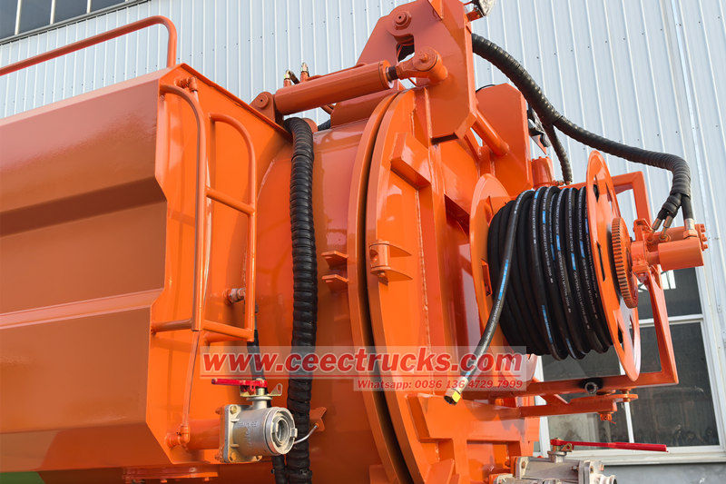 รถยนต์คันนี้ติดตั้งปั๊มน้ำแรงดันสูงเพื่อเพิ่มแรงดันน้ำสะอาดให้ถึง 16-240 MPa และตัดและล้างสิ่งอุดตันที่กำจัดยาก เช่น ตะกอน รากไม้ บล็อกคอนกรีต บนผนังด้านในของท่อผ่านหัวฉีดแบบหมุน ในขณะเดียวกัน ปั๊มสูญญากาศจะใช้เพื่อสร้างแรงดันลบในตัวถังเพื่อดูดตะกอนบดและน้ำเสียเข้าไปในตัวถังผ่านท่อดูดน้ำเสีย วินช์ไฮดรอลิกใช้เพื่อควบคุมการขยายและหดตัวของท่อแรงดันสูงตลอดการทำงานเพื่อให้แน่ใจว่าผู้ปฏิบัติงานสามารถขุดลอกท่อลึกได้โดยไม่ต้องลงไปในบ่อน้ำ