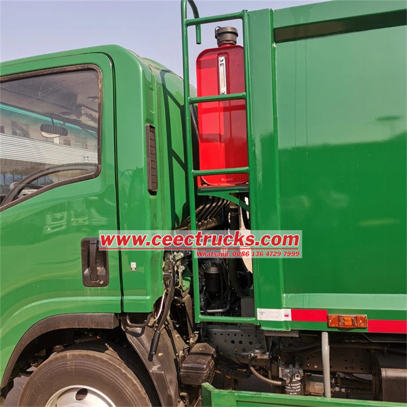 รถบรรทุกบดอัดขยะแบบหน้าตักหลัง ISUZU NPRเรียกอีกอย่างว่ารถบดอัดขยะ, รถเก็บขยะ/รถบังคับ RCVซึ่งเป็นยานพาหนะสุขาภิบาลสิ่งแวดล้อมในเมืองประเภทพิเศษที่รวบรวมและขนส่งขยะซึ่งสามารถป้องกันมลพิษรองที่เกิดจากการหกเลอะเทอะบนท้องถนนได้ ขยะที่เก็บรวบรวมภายในเครื่องบดอัดจะถูกผลักออกจากถังโดยขับเคลื่อนด้วยไฮดรอลิกแผ่นดีดตัว-ผู้ชายสองคน(คนขับและผู้ควบคุม) จำเป็นต้องทำหน้าที่ทั้งหมดของเครื่องบดอัด โดยส่วนใหญ่ใช้เพื่อขนส่งขยะในครัวเรือน แต่ยังสามารถขนส่งเถ้า ทราย หิน ดิน และวัสดุก่อสร้างจำนวนมากอื่นๆและสามารถขนส่งได้แร่หรือถ่านหินในเหมืองหรือการก่อสร้างถ่านหิน, ใช้กันอย่างแพร่หลายในด้านสุขาภิบาลสิ่งแวดล้อม การบริหารเทศบาล โรงงาน และสถานประกอบการเหมืองแร่ชุมชนทรัพย์สิน พื้นที่ที่อยู่อาศัยที่เป็นแหล่งรวมขยะ-
