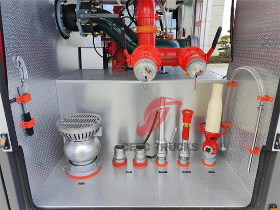 2. การจ่ายน้ำจากถังเก็บน้ำ : ถังน้ำขนาด 10 ลูกบาศก์เมตรที่ติดตั้งในรถมีน้ำเพียงพอสำหรับระบบดับเพลิง ปั๊มดับเพลิงจะดูดน้ำจากถังน้ำผ่านท่อและส่งแรงดันไปยังเครื่องตรวจจับเพลิงหรือปืนดับเพลิงโฟม