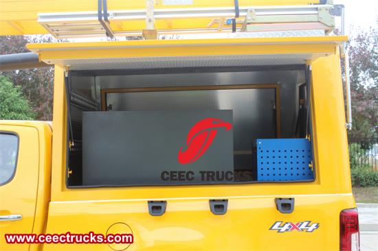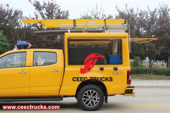 รถปิกอัพเคลื่อนที่ขับเคลื่อนสี่ล้อ Isuzu 4x4 ที่ผลิตโดย POWERSTAR ได้รับการดัดแปลงโดยอิงจากรถปิกอัพขับเคลื่อนสี่ล้อ Isuzu รถคันนี้ติดตั้งเครื่องยนต์ 4KH1CT6H1 143 แรงม้า มีฐานล้อ 3406 มม. และมีแรงบิดสูงสุด 320 นิวตันเมตร จับคู่กับเกียร์ Isuzu MSB 5 สปีดซึ่งมีกำลังแรงและเปลี่ยนเกียร์ได้อย่างนุ่มนวล กล่องเครื่องมือที่ด้านหลังของรถสามารถติดตั้งเครื่องมือบริการที่จำเป็นได้ตามความต้องการ