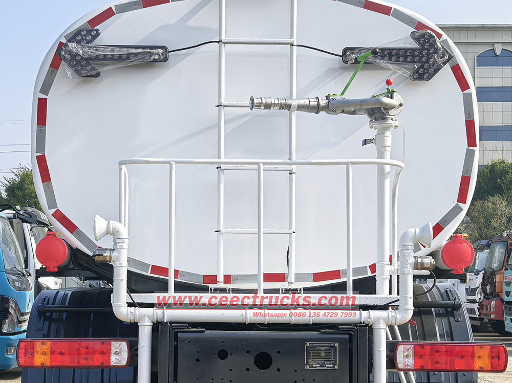 The IVECO 6x4 20cbm water bowser truck mainly consists of a chassis, water tank, piping system, water pump, and spraying device. The water tank is made of high-quality carbon steel, providing excellent sealing and corrosion resistance; the water pump is powerful, ensuring stable spraying range and pressure.