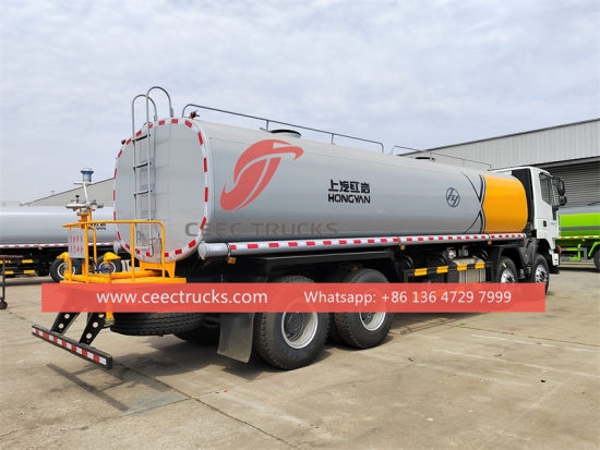รถบรรทุกน้ำ Iveco 20,000 ลิตร แชสซี Iveco 8x4 พวงมาลัยซ้าย เกียร์ธรรมดา 12 เกียร์ เครื่องยนต์ดีเซล WP10.340E32 340 แรงม้า ปั๊มน้ำยี่ห้อดัง พร้อมหัวฉีดด้านหน้า ตรงกลาง และด้านหลังให้เลือกได้ตามต้องการ งานพ่นสีและโลโก้ทั้งหมดขึ้นอยู่กับความต้องการ
