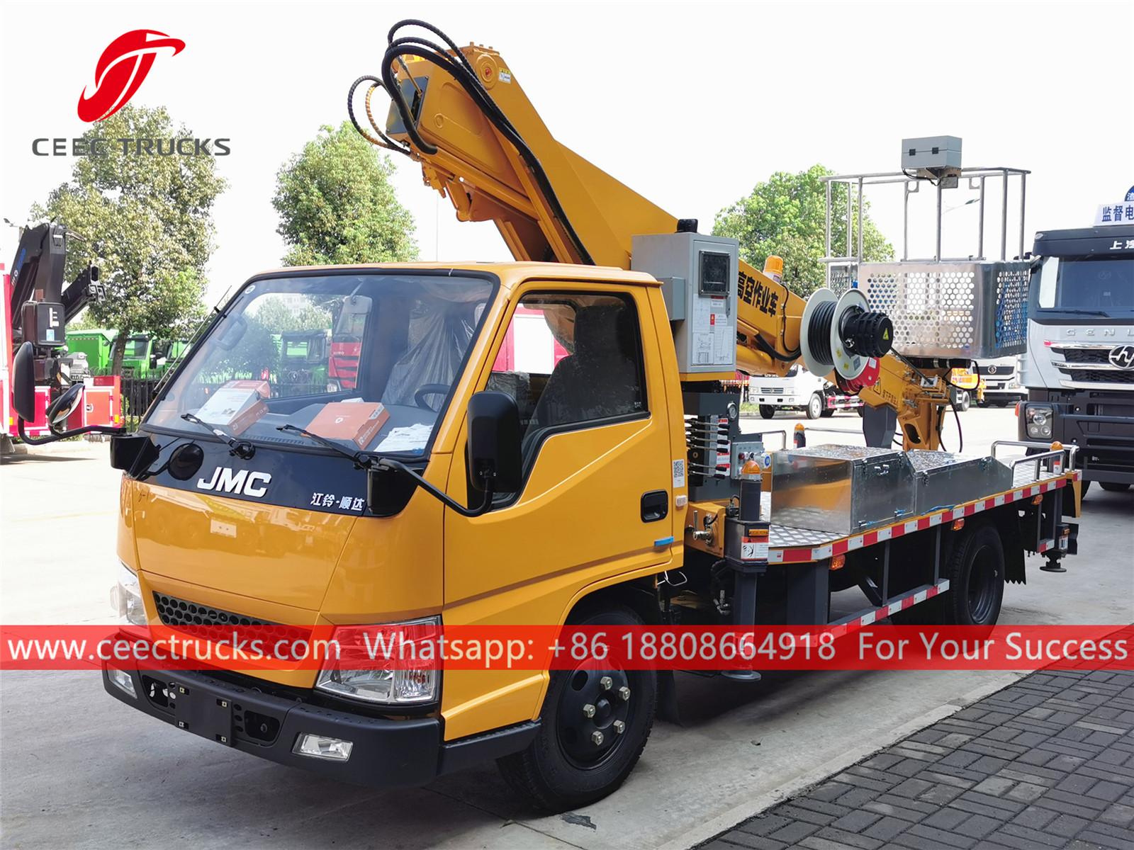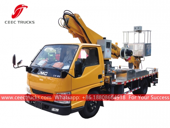 บูมยืดไสลด์ JMC 16 ม. -อีกด้วยเรียกว่า รถบรรทุกกระเช้าลอยฟ้า, รถบรรทุกบูมลิฟท์ติดรถบรรทุก JMC, รถยกคนราคาถูก, รถบรรทุกปฏิบัติการยกพื้นสูง, รถทำงานบนที่สูง 4x2, รถบรรทุกกระเช้ายกแขน-เหมาะสำหรับการบำรุงรักษาไฟจราจร ไฟถนน ต้นไม้จัดสวน ทำความสะอาด/ตั้งป้าย และงานทางอากาศที่สูงอื่นๆ-