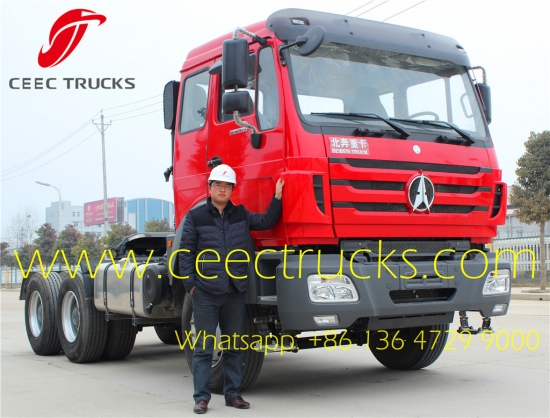 รถบรรทุกพ่วงหัวลาก BEIBEN 6*4 กำลัง 380 แรงม้า รุ่น 2638 2538/6×4/3450+1450/ห้องโดยสารสั้น/ขนาด 6935*2495*3340 มม. เทคโนโลยี Mecedes Benz ส่งออกแอฟริกา คองโก ไอวอรีโคสต์ แทนซาเนีย และอื่นๆ