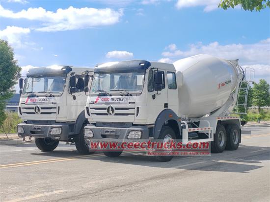 รถบรรทุกผสมคอนกรีต Beiben 6x4 ขนาด 10 ลูกบาศก์เมตร ใช้ตัวถัง Beiben NG80B 2634 6x4 ฐานล้อ 3800+1450 มม. ติดตั้งเครื่องยนต์ Weichai WP10.340E32 และเกียร์ 9 สปีดแบบ Fast ถังผสมด้านบนมีความจุ 10 ลูกบาศก์เมตร ทำจากเหล็กแมงกานีส Q355 ตัวถังหนา 5 มม. หัวหนา 6 มม. และใบพัดหนา 4 มม. ติดตั้งตัวลด Bonfiglioli 577L จากอิตาลี ปั๊มไฮดรอลิก Eaton 6423-279 และมอเตอร์ 6433-042 จากอเมริกา หม้อน้ำ Kaipeng KT-YS-18L จากจีน ชุดกล่องควบคุมอากาศ ถังเก็บน้ำความจุ 400 ลิตร ระบบจ่ายน้ำแรงดันอากาศ มือจับควบคุมสองด้านที่ด้านหลัง การเชื่อมต่อ และอัตราการตกค้างต่ำ