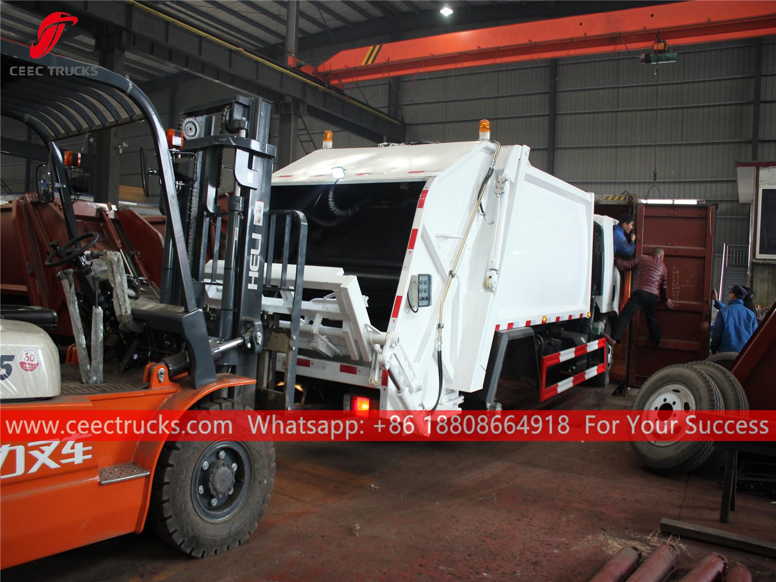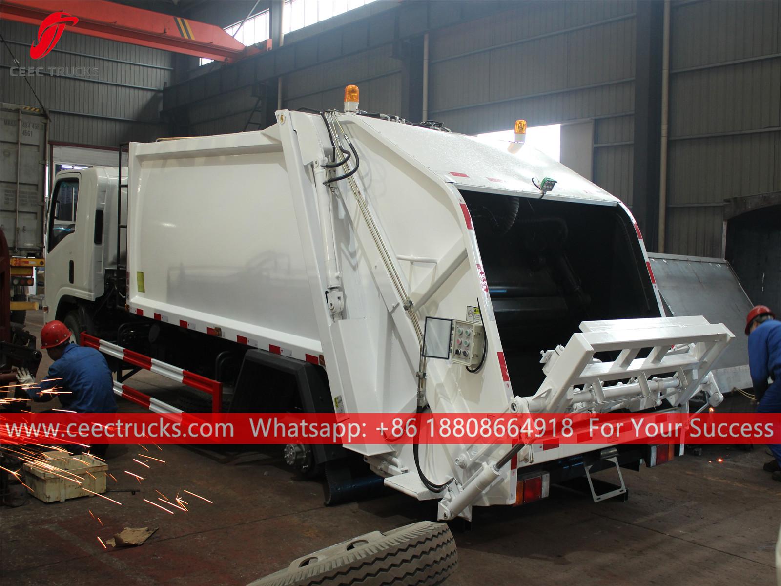 รถบรรทุกบดอัดขยะ ISUZU 700p 8 cbm ในโรงงานของเรา
