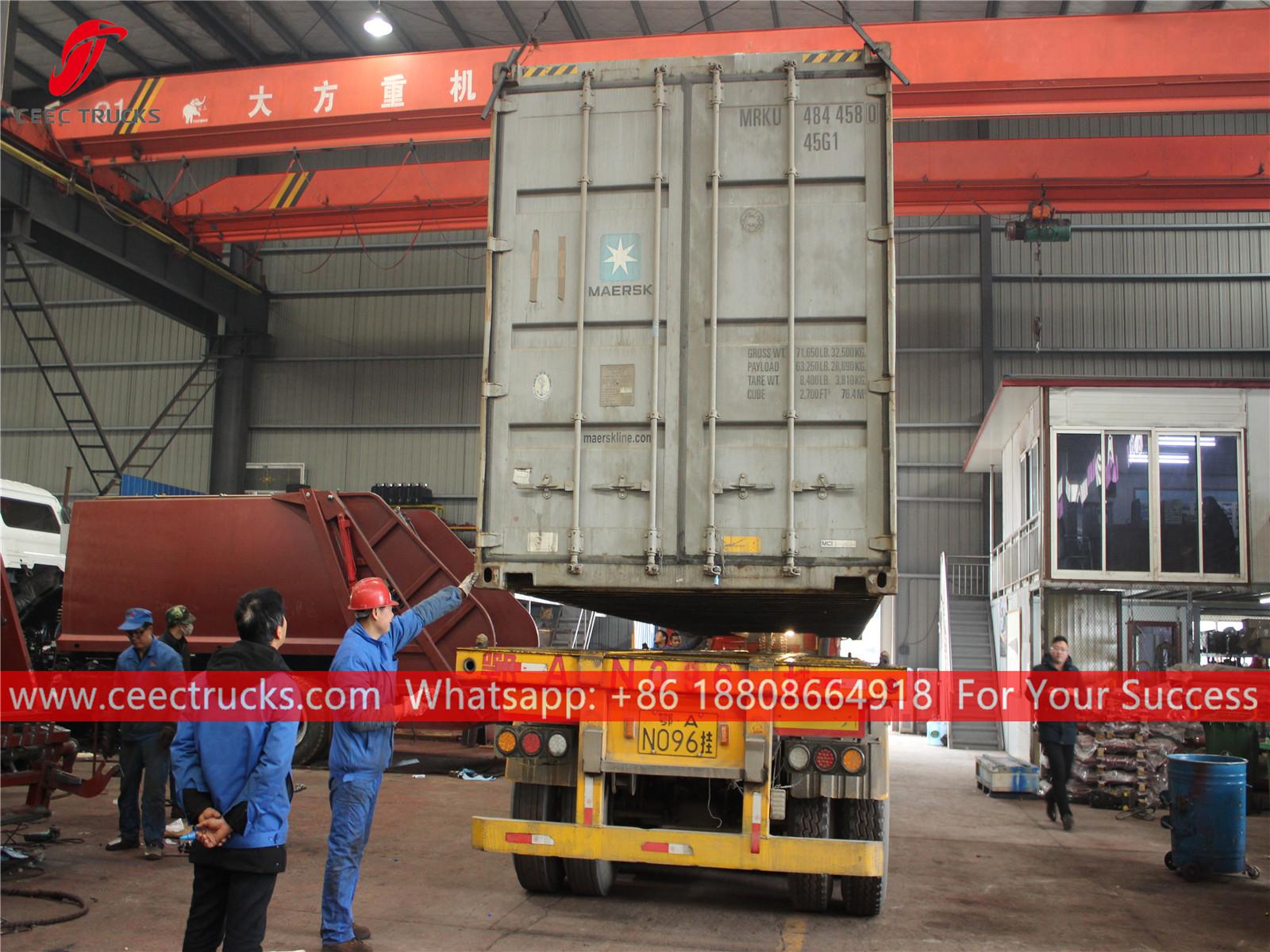 หลังจากได้รับคำสั่งซื้อรถบรรทุกอัดขยะแล้ว เราจะคำนึงถึงความต้องการของลูกค้าเป็นพิเศษ โดยออกแบบขนาดรถบรรทุกอัดขยะท้ายคันนี้เป็นพิเศษ เนื่องจากรถจะขนส่งด้วยตู้คอนเทนเนอร์ขนาด 40 ฟุต เนื่องจากไม่มีเรือขนส่งสินค้าจำนวนมากหรือเรือโรโรจากจีนไปยังเคปเวิร์ด