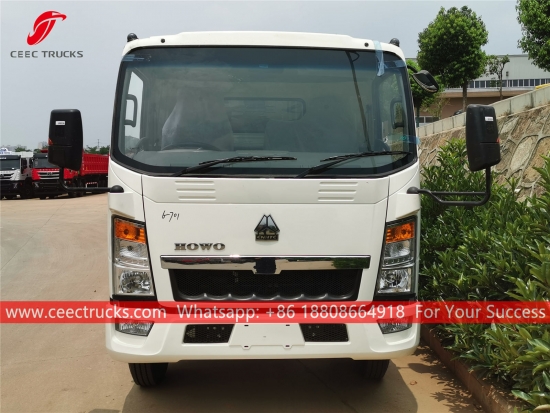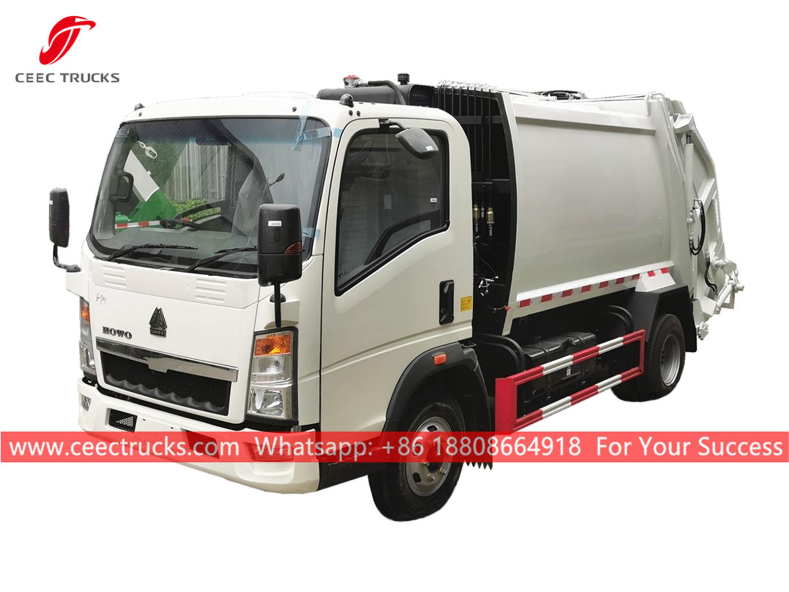 รถบรรทุกขยะ HOWO RHD ตัวถังรถบรรทุกใช้เครื่องยนต์ดีเซล CUMMINS 130HP เกียร์ธรรมดา 6 เกียร์ กล่องควบคุม PLC เพื่อการใช้งานที่ง่ายดาย งานพ่นสีและโลโก้ทั้งหมดขึ้นอยู่กับความต้องการของลูกค้า