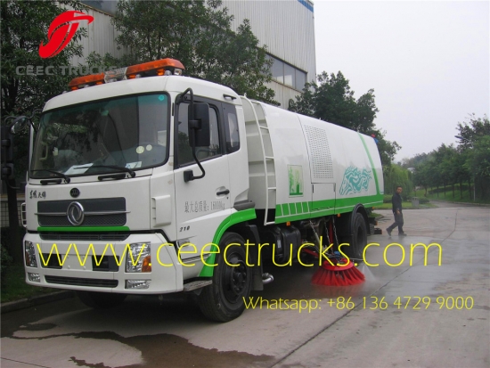 รถบรรทุกกวาดถนน Dongfeng 9m³ แชสซียี่ห้อ Dongfeng สำหรับรุ่น LHD และ RHD ตัวถังวัสดุสแตนเลสพร้อมถังเก็บฝุ่น 6CBM และถังน้ำสะอาด 3CBM เครื่องกวาดถนน 4 แปรงสำหรับฟิลิปปินส์และปากีสถาน
